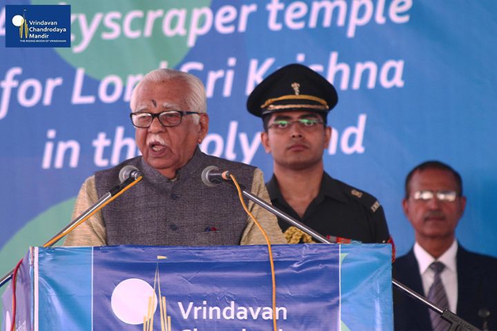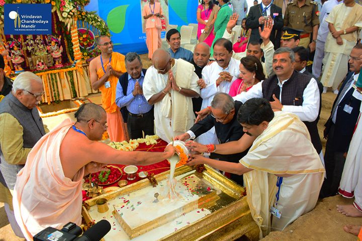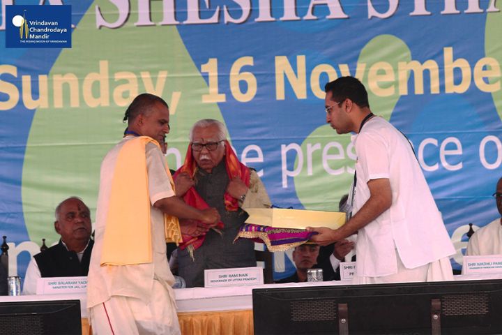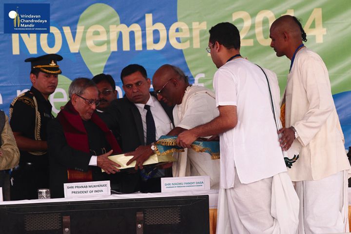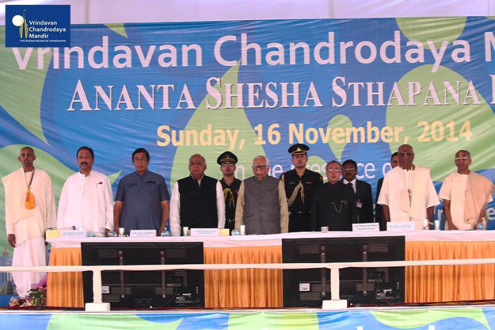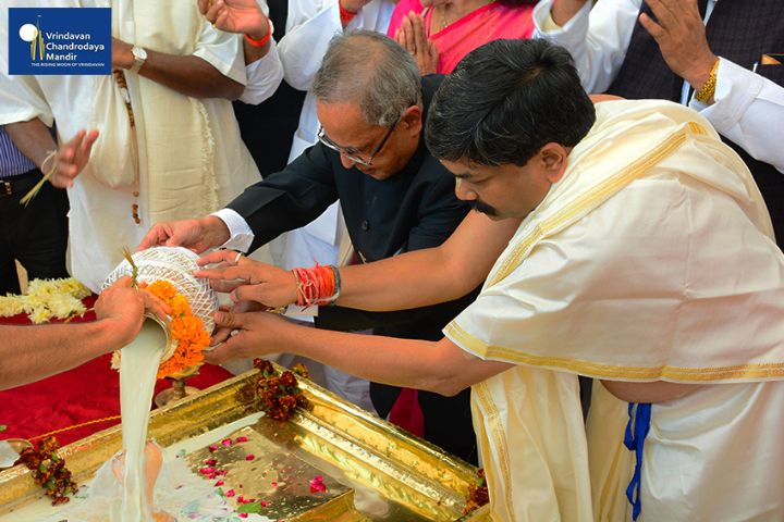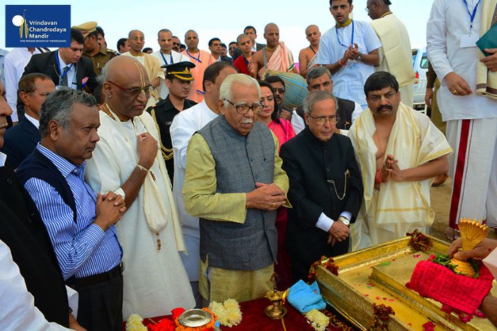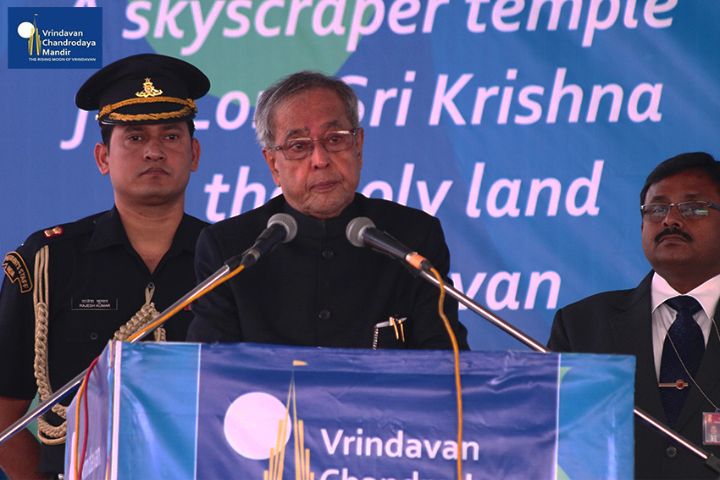 Sri Pranab Mukherjee, Former President of India, arrived in Vrindavan on 16th November, 2014, to grace the occasion of Ananta Shesha Sthapana Puja at Vrindavan Chandrodaya Mandir, the world's tallest skyscraper temple for Lord Sri Krishna in Vrindavan.